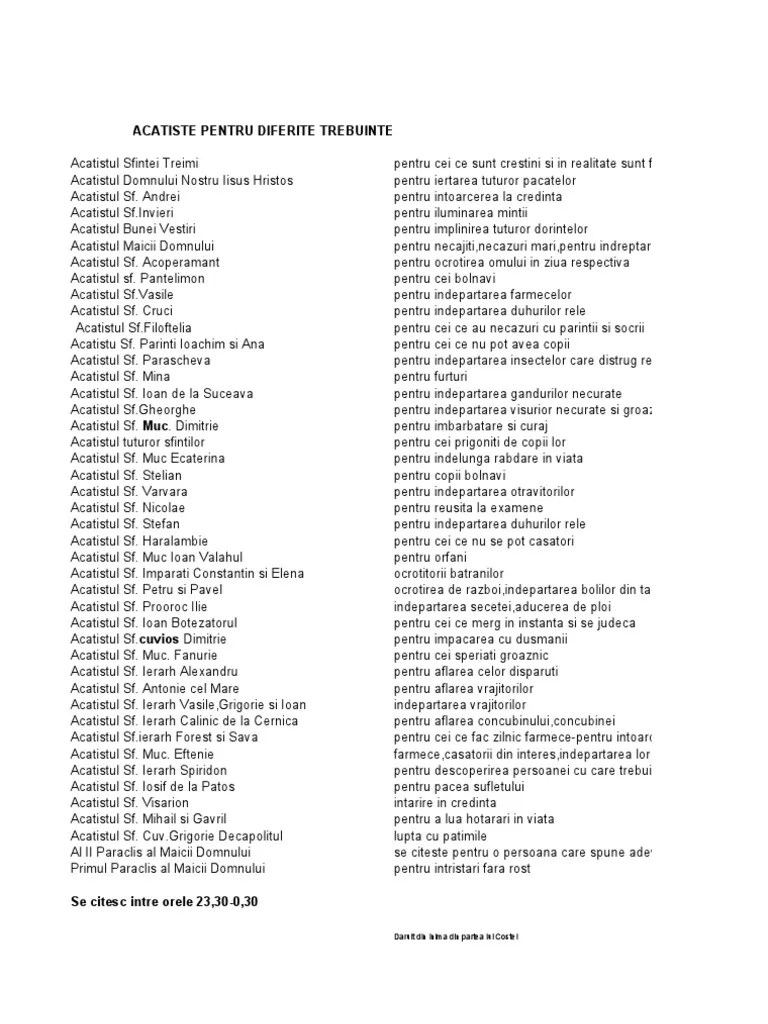 I n numele tatalui si al fiului si al sfantului duh, amin. S lava tie, dumnezeul nostru, slava tie! Acatistul maicii domnului, povatuitoarea copiilor. S lava tie, dumnezeul nostru, slava tie! S lava tie, dumnezeul nostru, slava tie! 31/08/2013 · acatistul sf.gheorghe pentru indepartarea visurior necurate si spaimei, pentru imbarbatare si curaj. Slava tie, dumnezeul nostru, slava tie! Slava tie, dumnezeul nostru, slava tie! Muc ecaterina pentru indelunga rabdare in viata. 25/09/2017 · canonul şi acatistul de pocăinţă pentru avorturi. Prin numele de acatist se înţelege "rugăciune citită în picioare", deci este o rugăciune care se citeşte obligatoriu în picioare sau stând în genunchi, dar numai după rostirea rugăciunilor începătoare! Amîndoi trebuie să facă pocăinţă înaintea lui dumnezeu, prin zdrobirea cugetului, prin spovedanie şi.